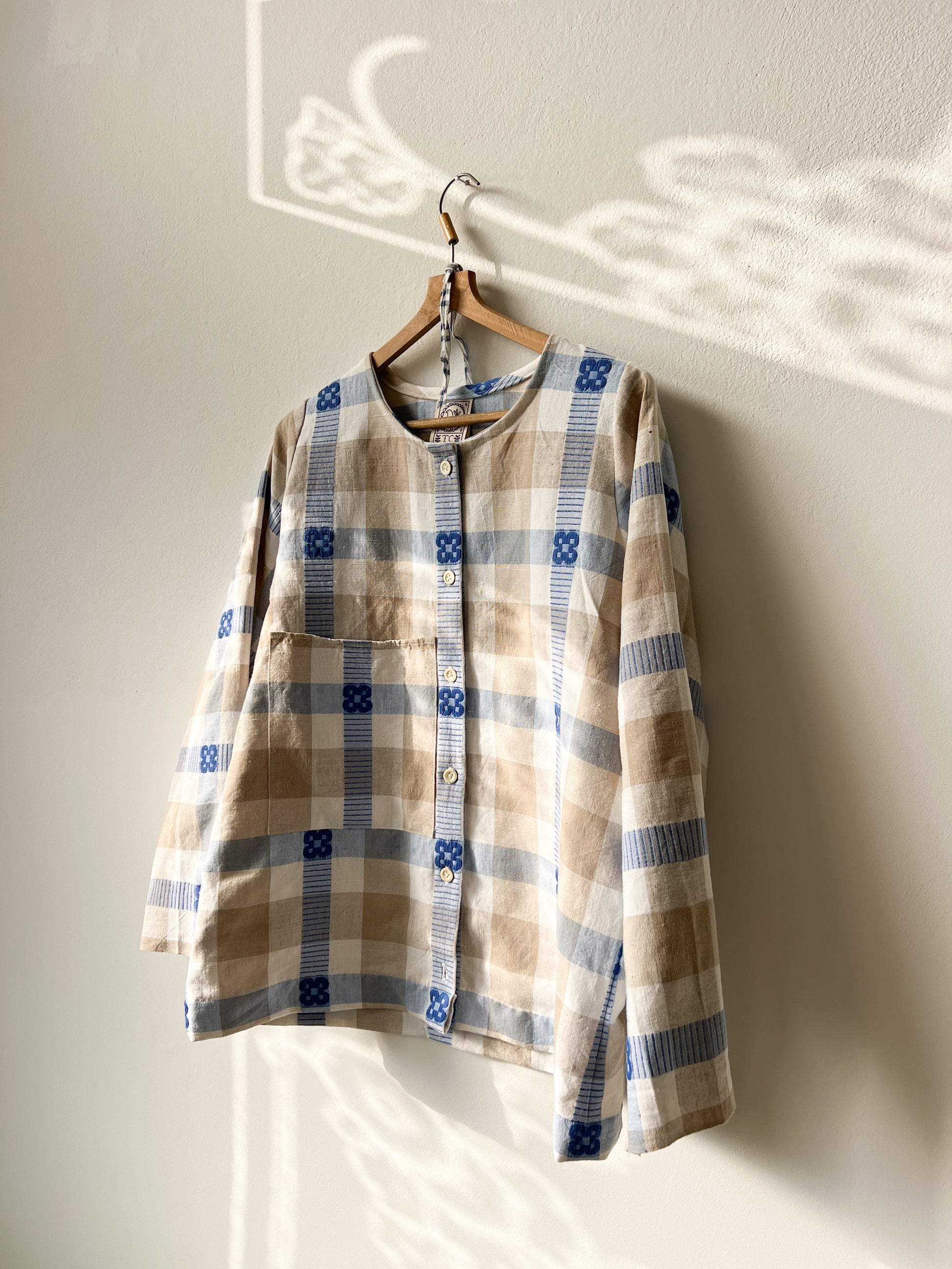 Každá košeľa je ušitá zo starého obrusu. A nesie v sebe príbeh. Šiť košele z obrusov som začala hlavne kvôli kvalite, ktorú v sebe staré, rokmi overené látky skrývajú. Presah príbehu prišiel až v momente, keď som sa v jednej, z obrusu vytvorenej košeli, prešla.